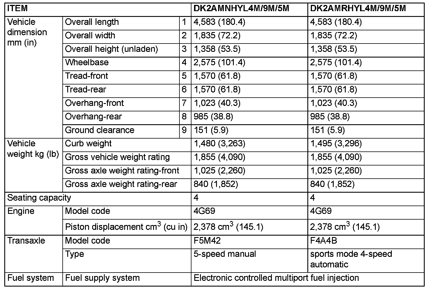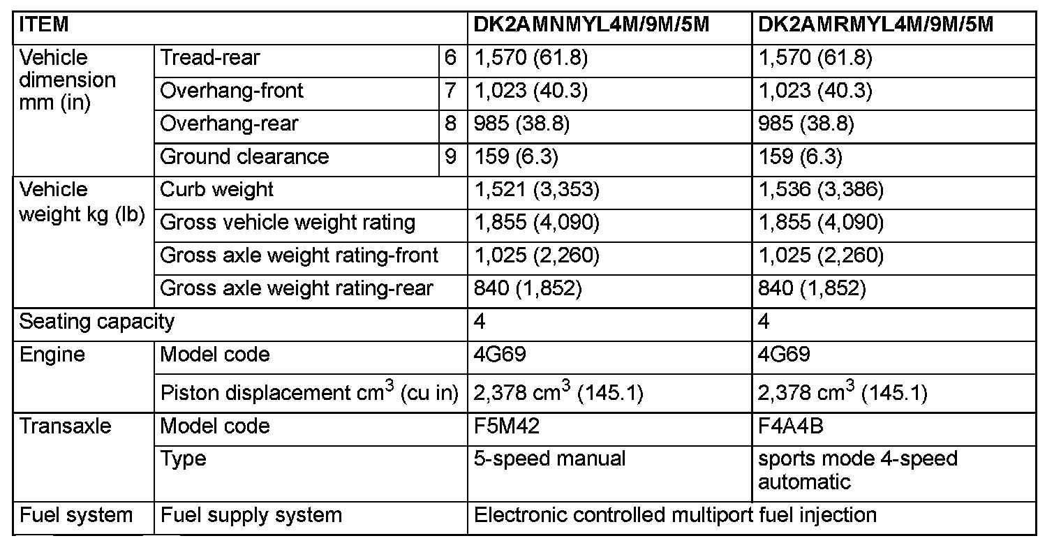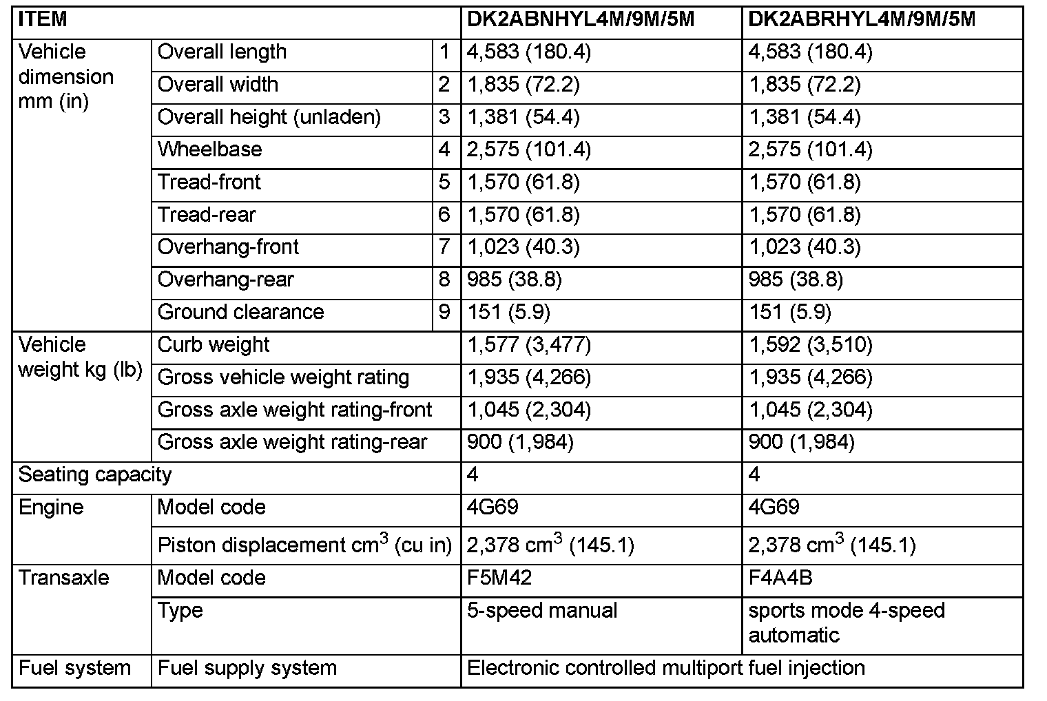 GENERAL SPECIFICATIONS (2.4L ENGINE)
