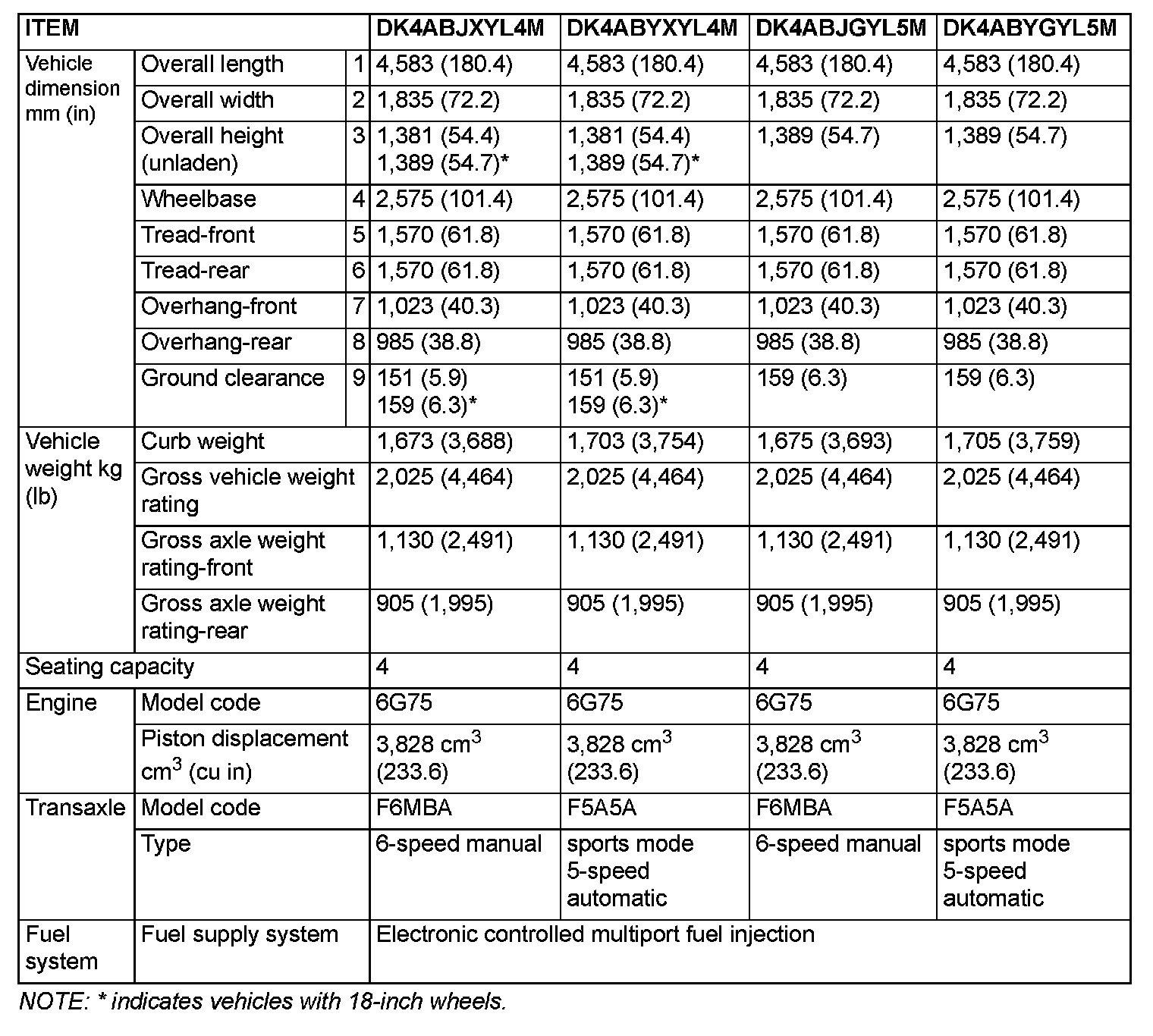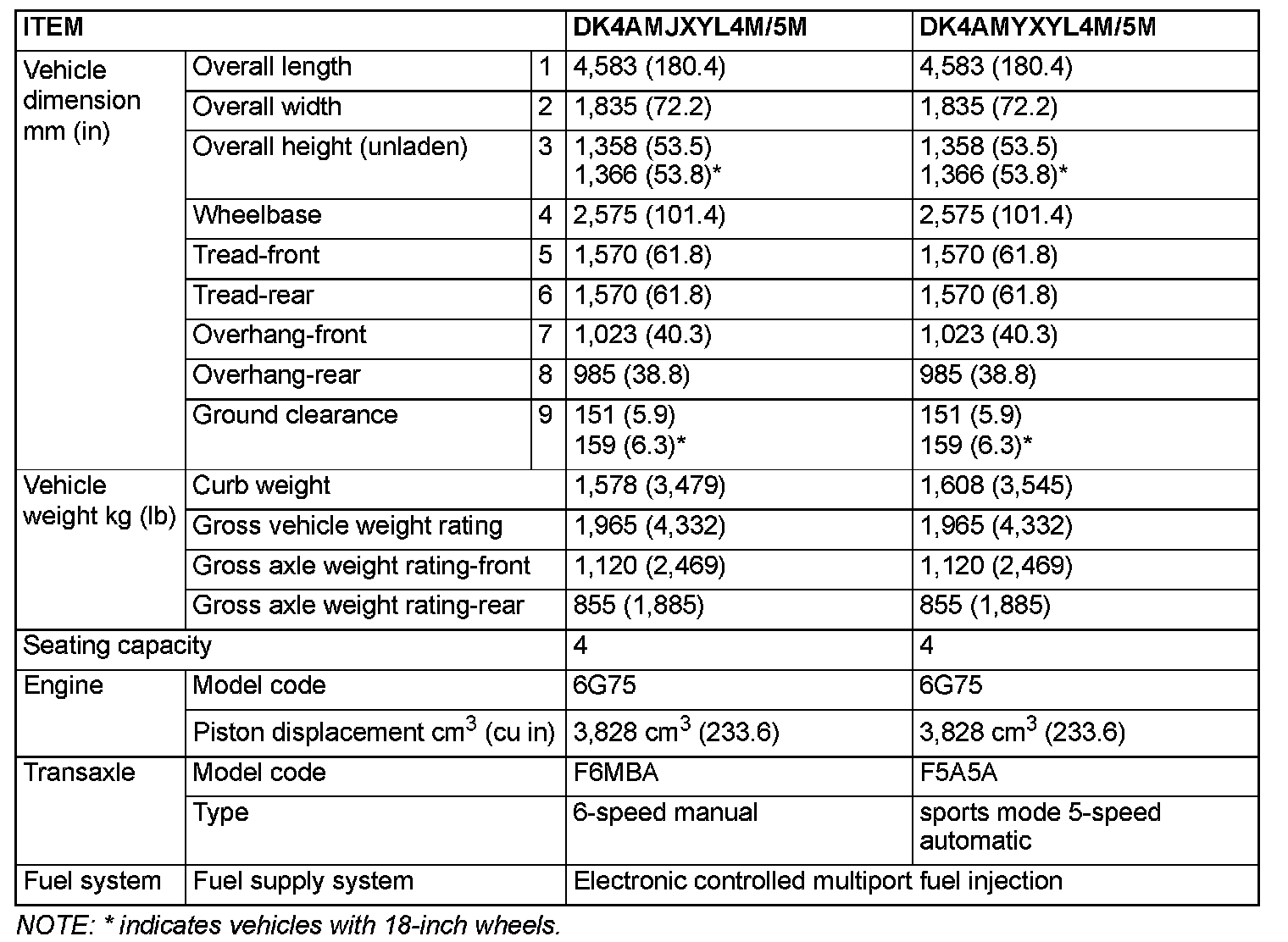 GENERAL SPECIFICATIONS (3.8L ENGINE)