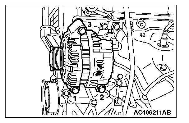 3. Tighten the generator assembly mounting bolts to the specified torque in the order shown.