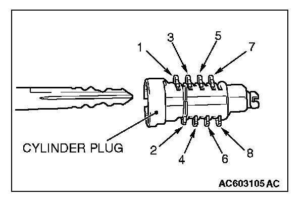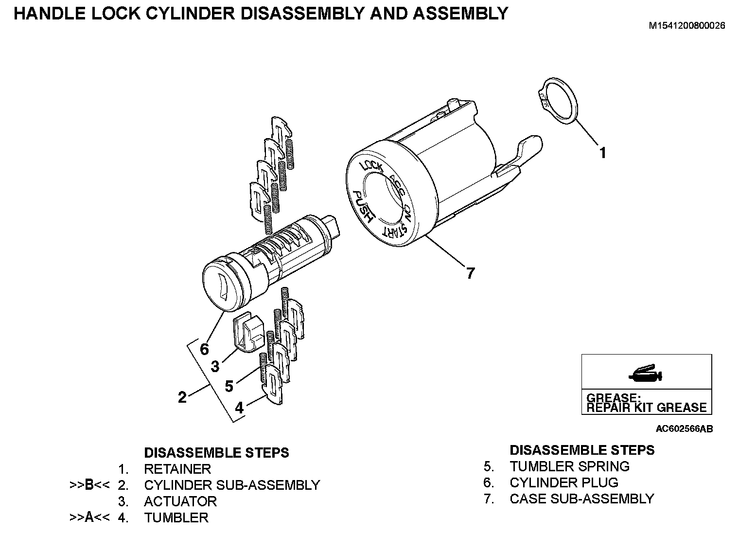 HANDLE LOCK CYLINDER DISASSEMBLY AND ASSEMBLYDisassembly Steps 1-7: