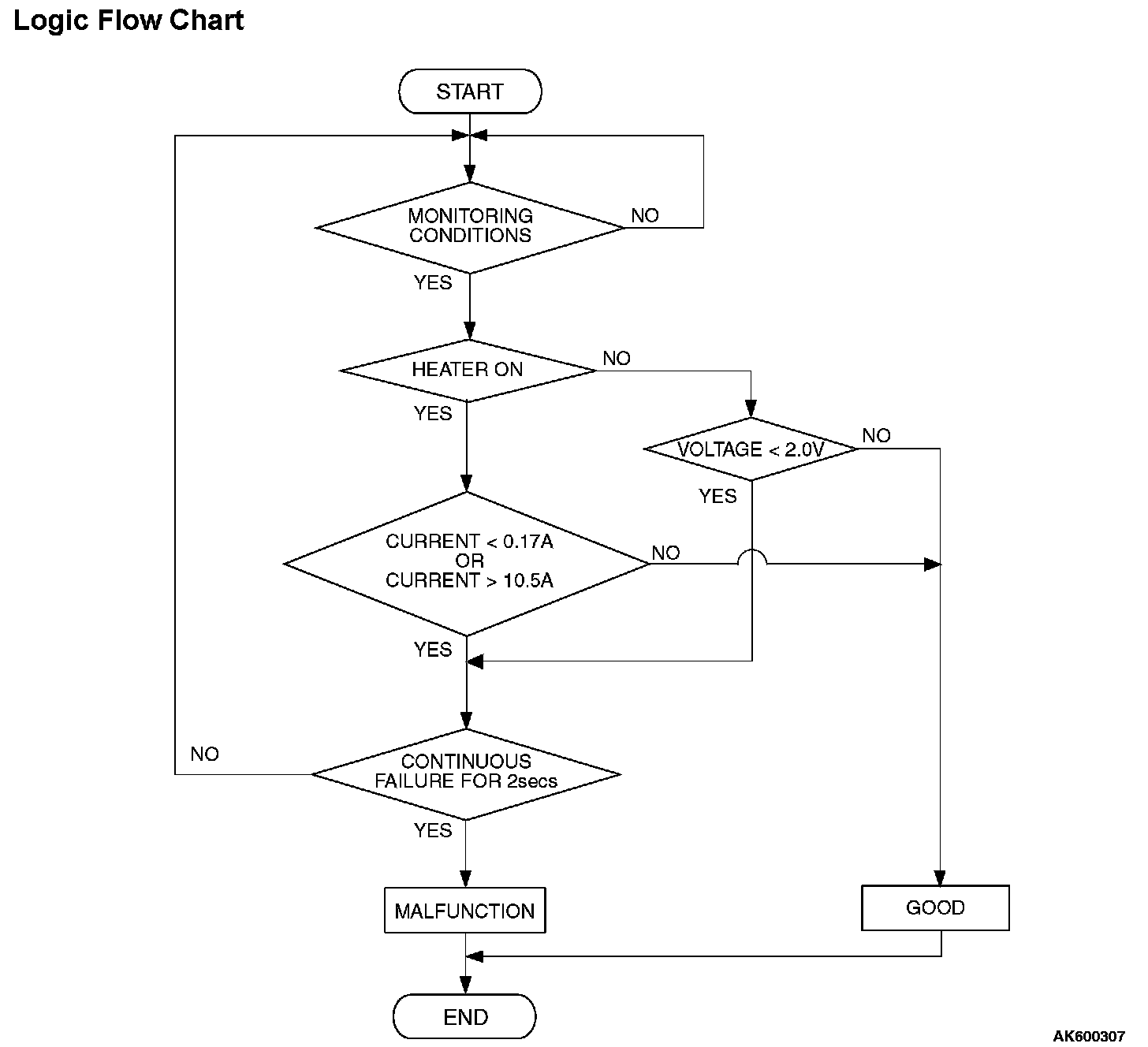 - The PCM checks whether the heater current is within a specified range when the heater is energized.