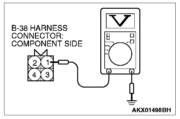 STEP 3. Measure the power supply voltage at cylinder 1, 4 heated oxygen sensor (rear) harness side connector B-38.