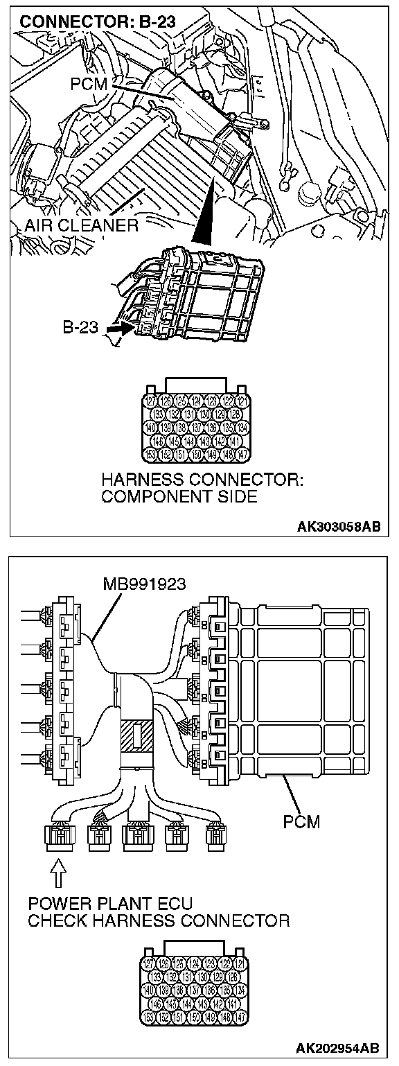 STEP 5. Measure the power supply voltage at PCM connector B-23 by using power plant ECU check harness special tool MB991923.