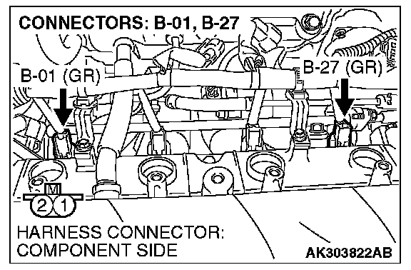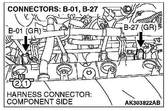 1. Disconnect the cylinder 1, 4 injector connector B-01, B-27.