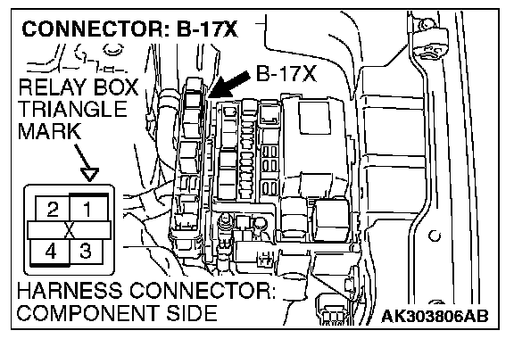STEP 5. Check harness connector B-17X at MFI relay for damage.