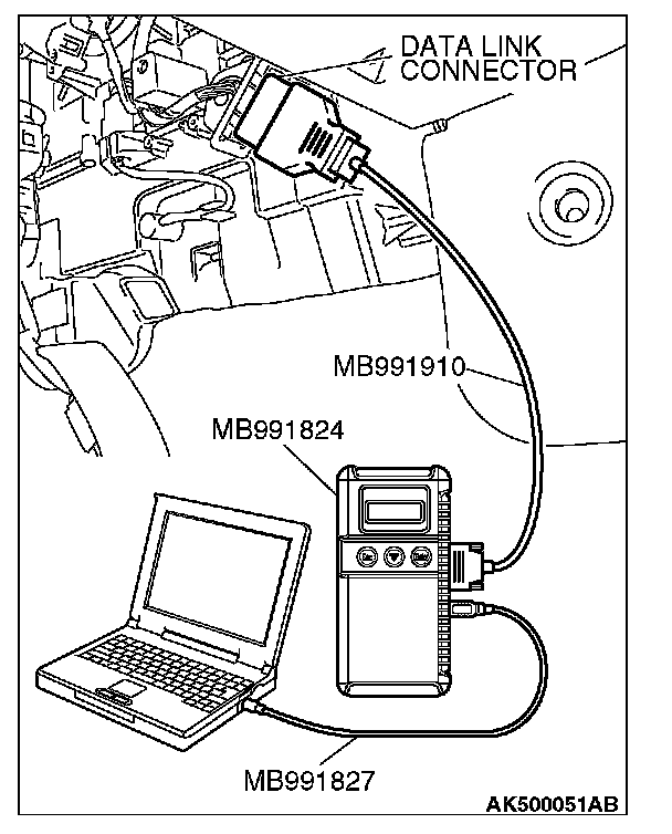 1. Connect scan tool MB991958 to the data link connector.