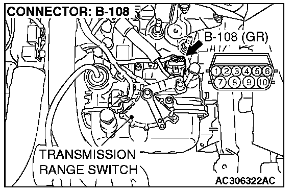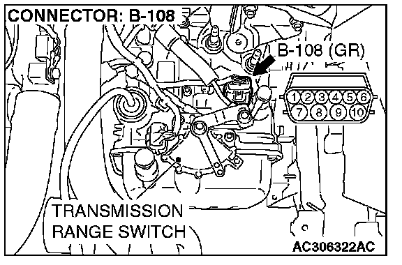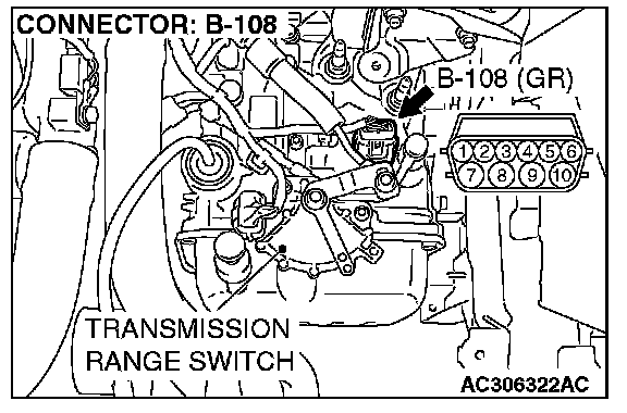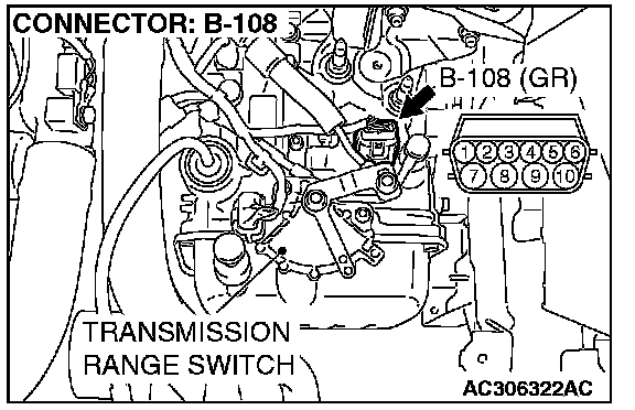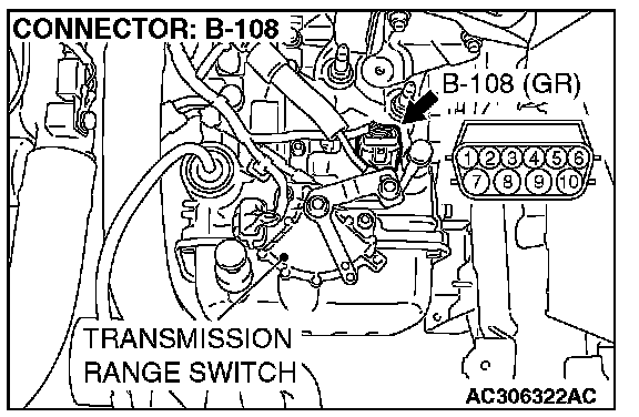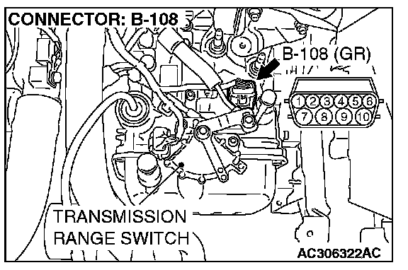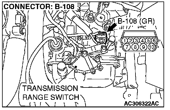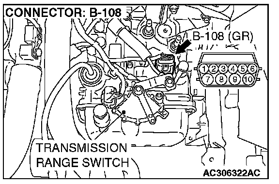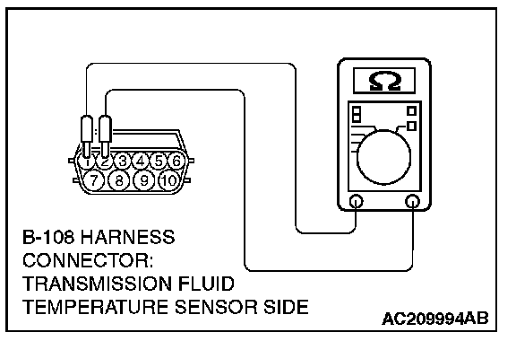 STEP 5. Check the transmission fluid temperature sensor at A/T control solenoid valve assembly connector B-108.