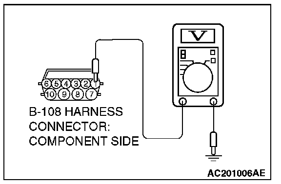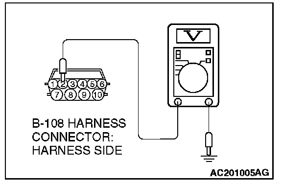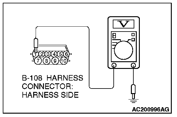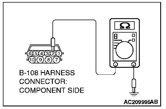 1) Disconnect connector B-108 and measure at the harness side.