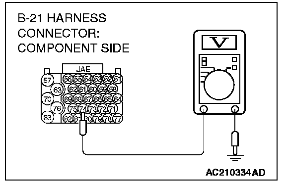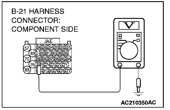 STEP 12. Measure the ground voltage at PCM connector B-21 by using check harness special tool MB991923.