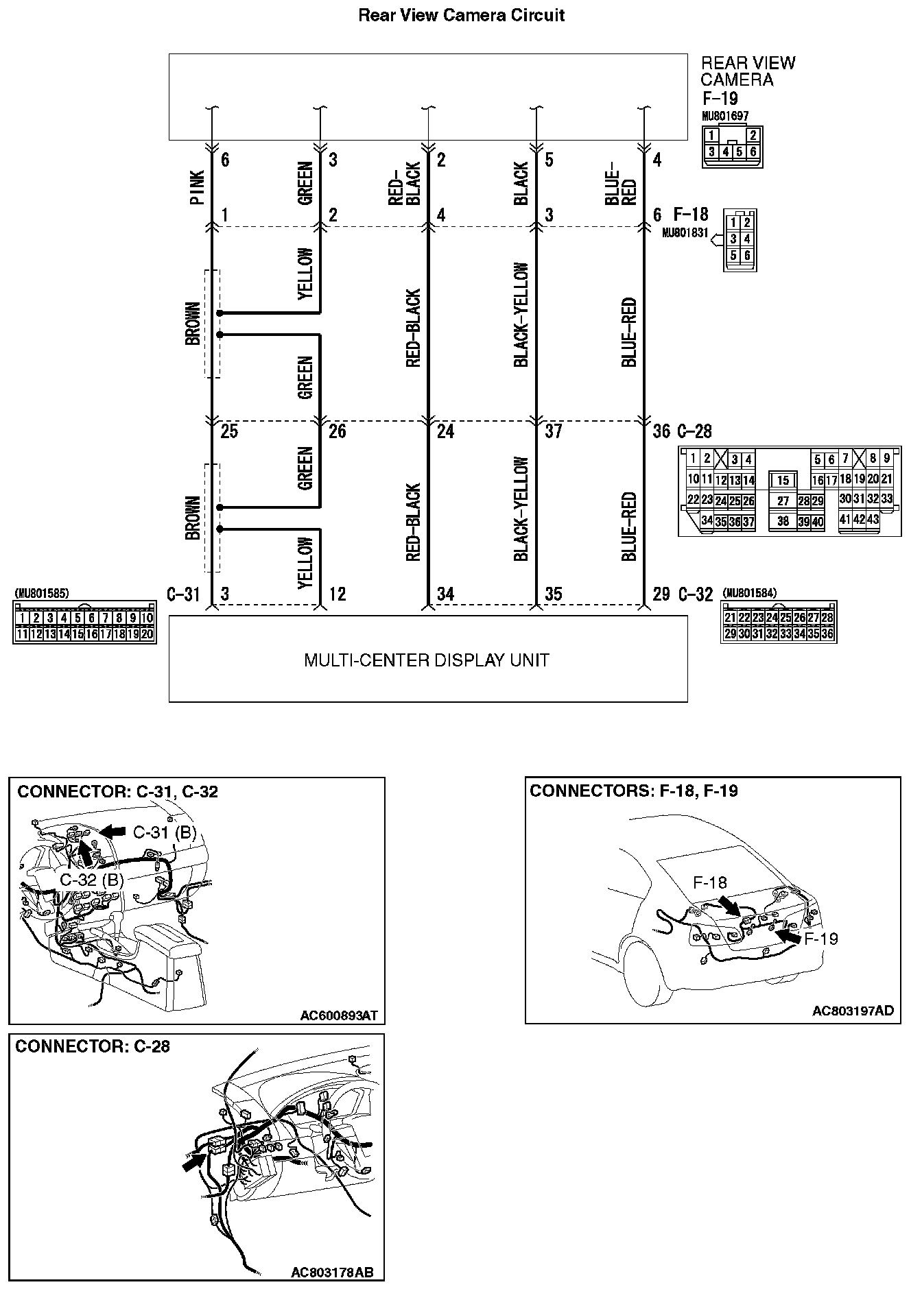 Q: Is multi-center display connector C-31,C-32 and rear view camera connector F-19 in good condition?