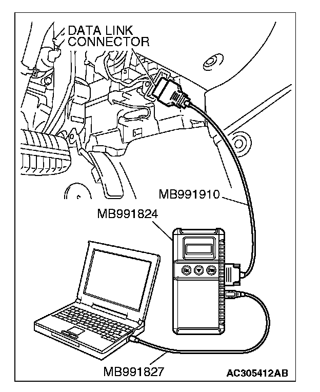 1. Connect scan tool MB991958 to the data link connector.