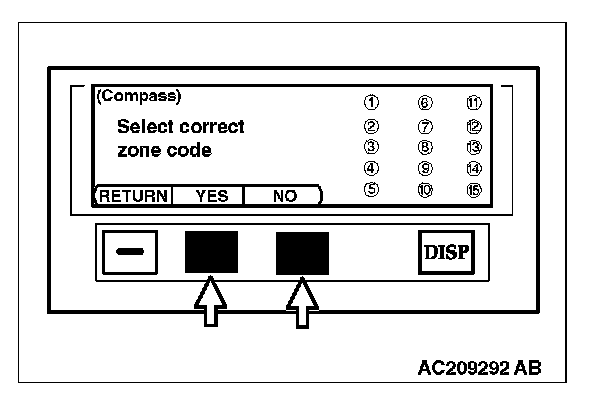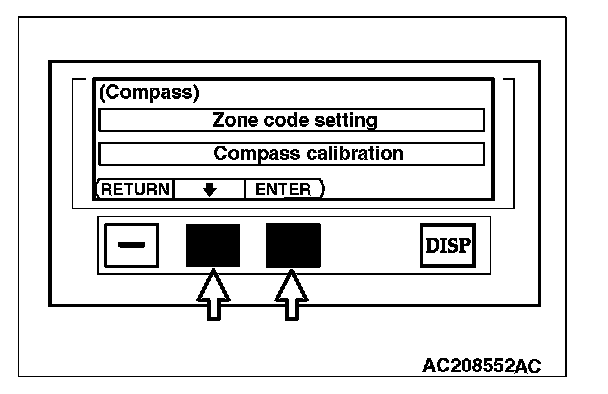 1. Choose "zone code setting" by pressing function button switch 2 on the compass selection screen, and press function button switch 3 (ENTER).