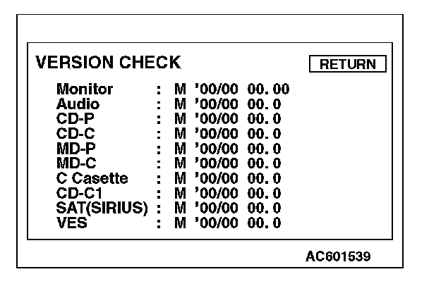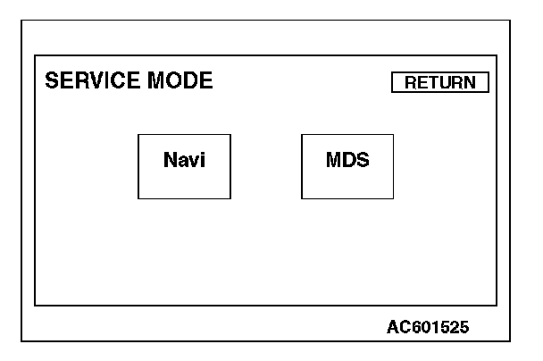 NOTE: When "RETURN" is touched on the MDS (multi-center display) service menu screen, the MDS (multi-center display) service menu ends, and the screen returns to the service mode top menu.