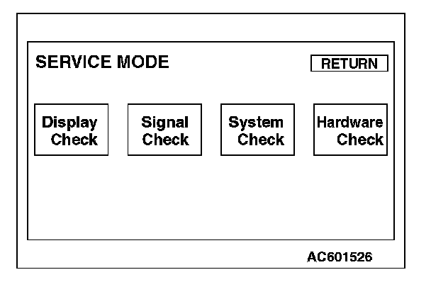 When "Hardware Check" is touched on the MDS (multi-center display) service menu, the menu is switched to the Hardware Check menu. From this menu, the switching to various hardware check modes is performed.