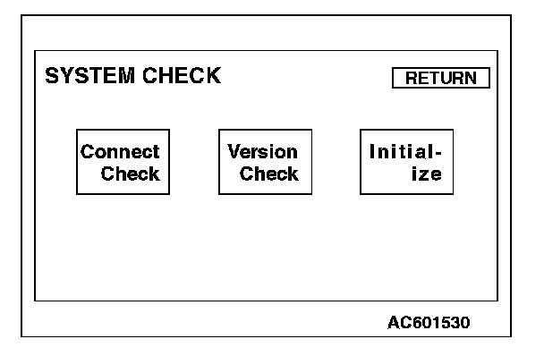 NOTE: When "RETURN" is touched on the System Check menu screen, the System Check mode ends, and the screen returns to the MDS (multi-center display) service menu.