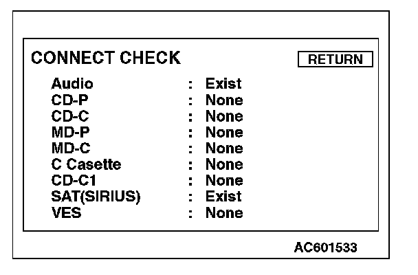- "SAT(SIRIUS)": Displays "Exist" when the satellite radio tuner (SIRIUS) is connected, and "None" when not connected.