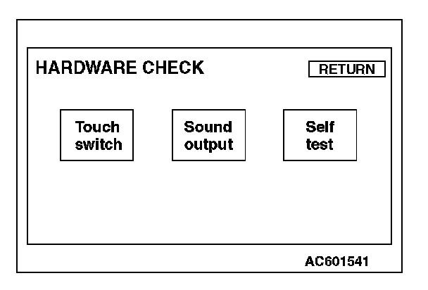 NOTE: When "RETURN" is touched on the Hardware Check menu screen, the Hardware Check mode ends, and the screen returns to the MDS (multi-center display) service menu.