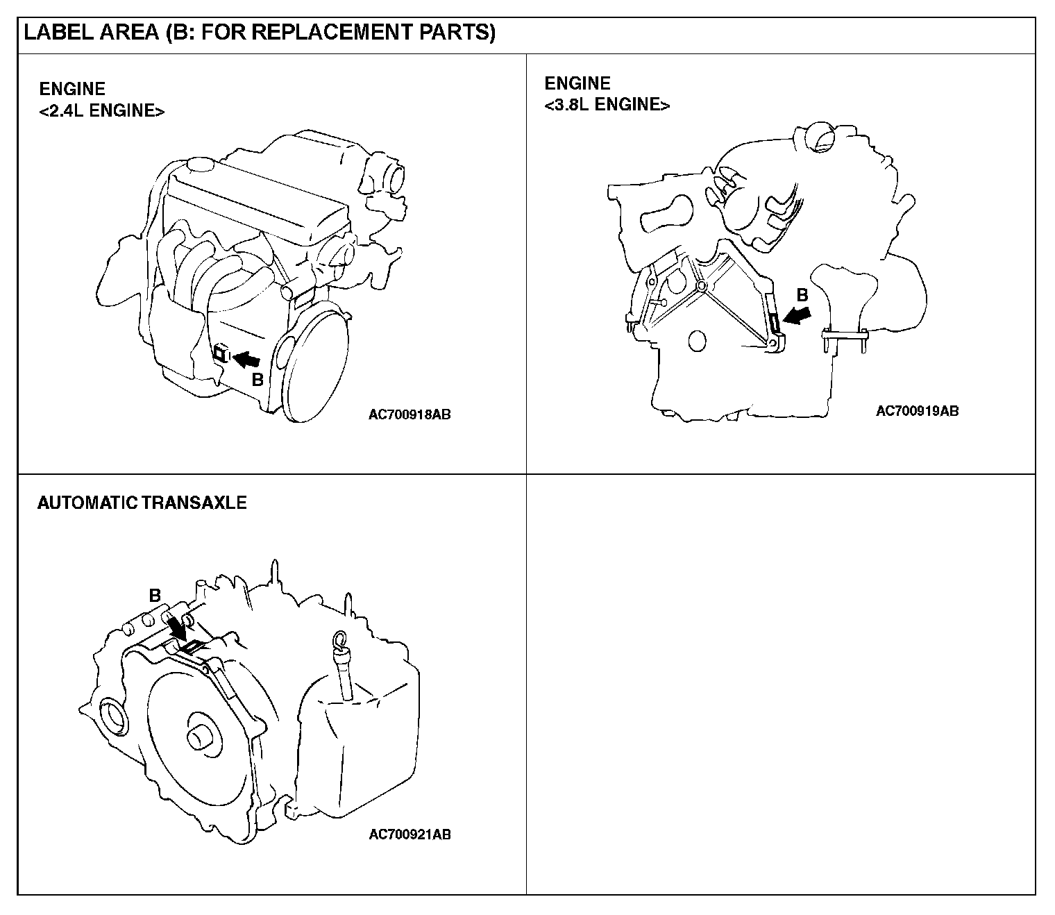 The mark in the illustration is stamped to replacement ports for the engine and the transaxle.
