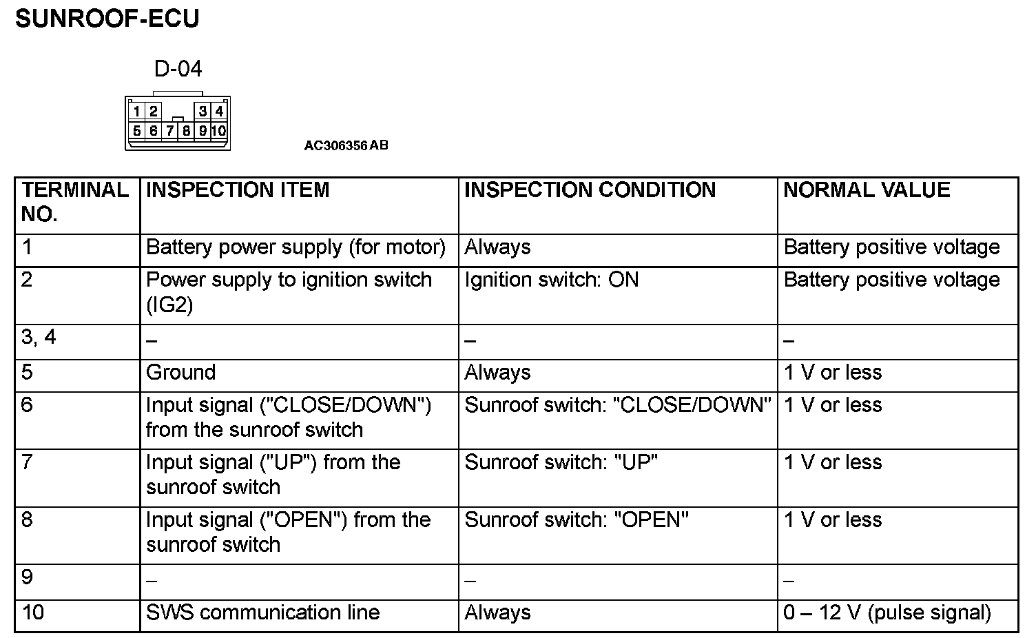 Check At ECU Terminal - Sunroof-ECU (Part 1):