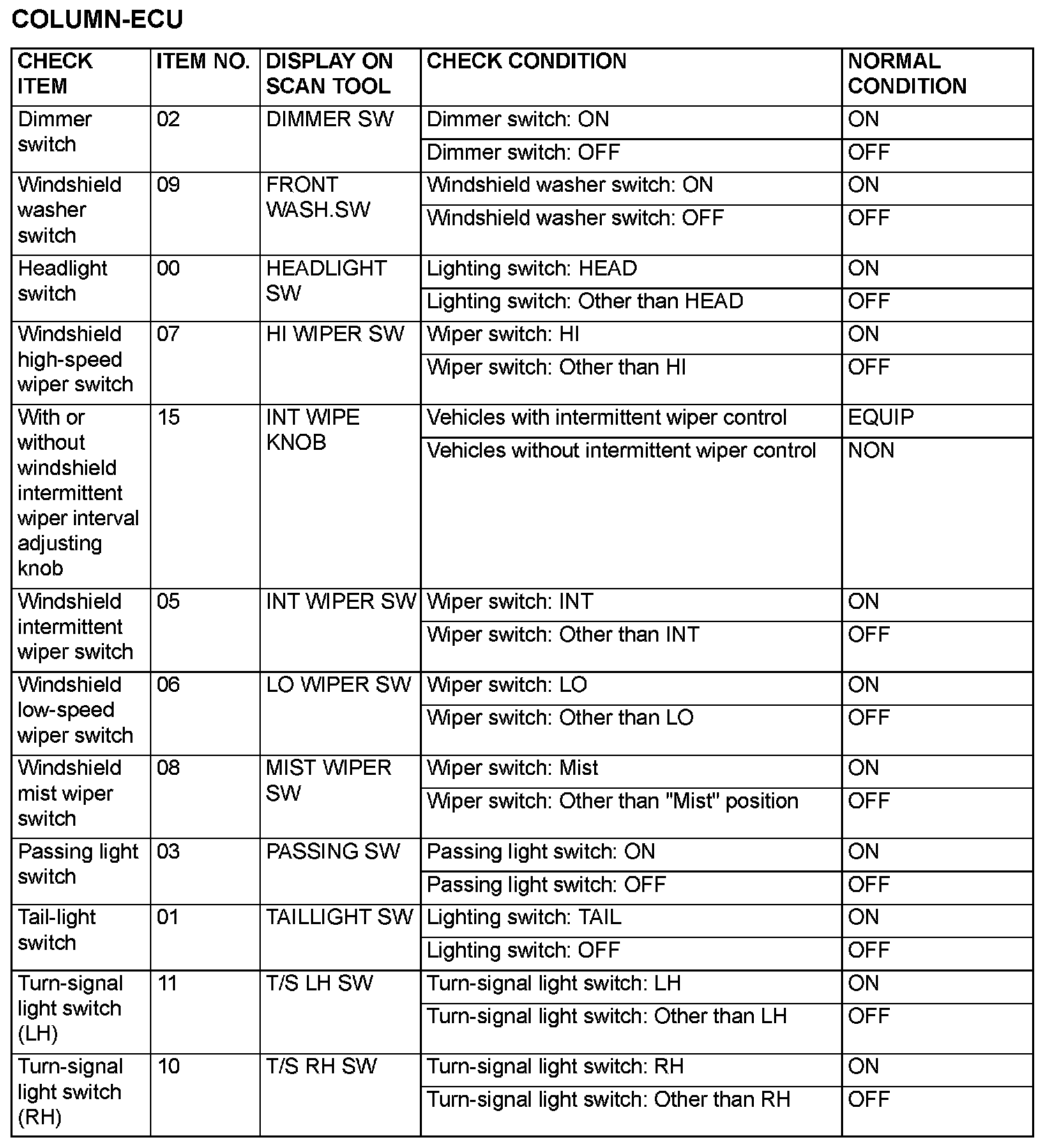 The table below shows the service data and their normal condition, which are displayed during the "Data List."