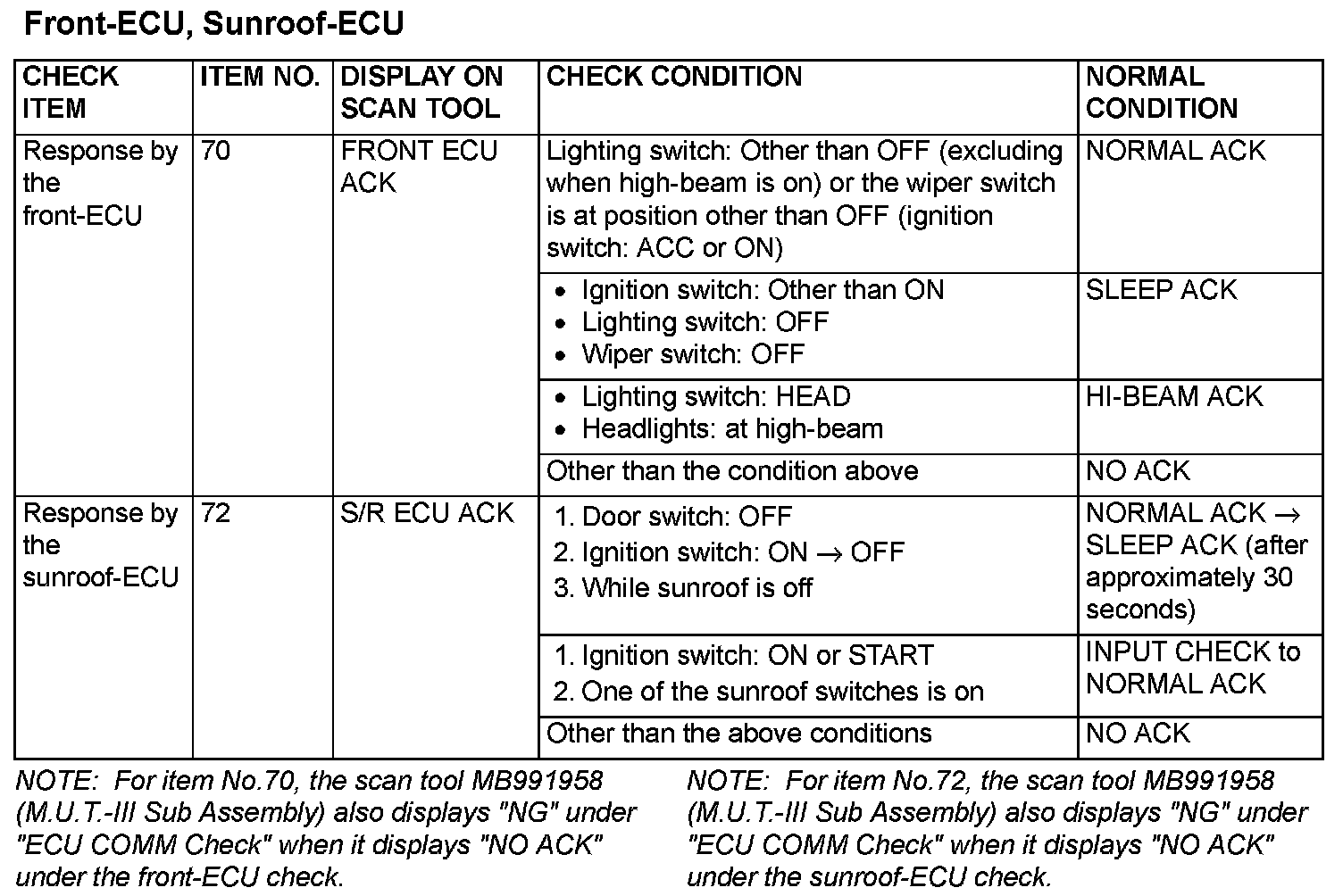 Data List Reference Table - Front-ECU, Sunroof-ECU: