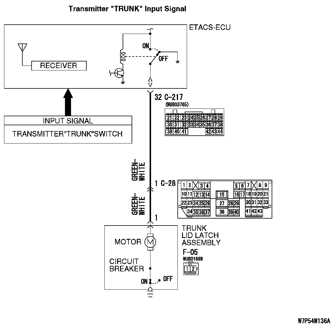 Q: Is trunk lid latch assembly connector F-05 and ETACS-ECU connector C-217 in good condition?