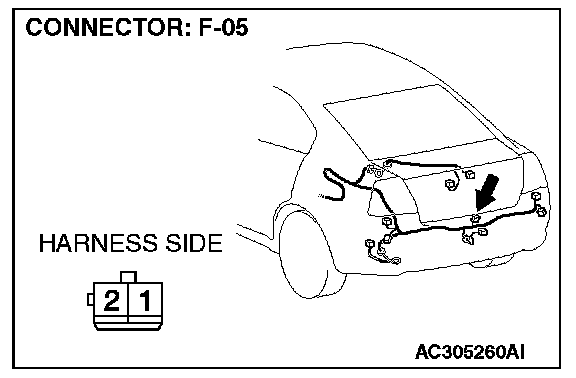 STEP 1. Check trunk lid latch assembly connector F-05 for loose, corroded or damaged terminals, or terminals pushed back in the connector.