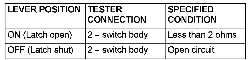 NO : The wiring harness may be damaged or the connector(s) may have loose, corroded or damaged terminals, or terminals pushed back in the connector. Repair the wiring harness as necessary. If the functions described in "CIRCUIT OPERATION" work normally, the input signal from the trunk lid latch assembly should be normal.