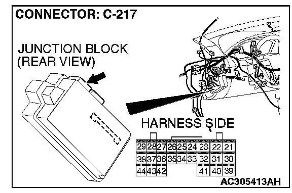 STEP 3. Check ETACS-ECU connector C-217 for loose, corroded or damaged terminals, or terminals pushed back in the connector.