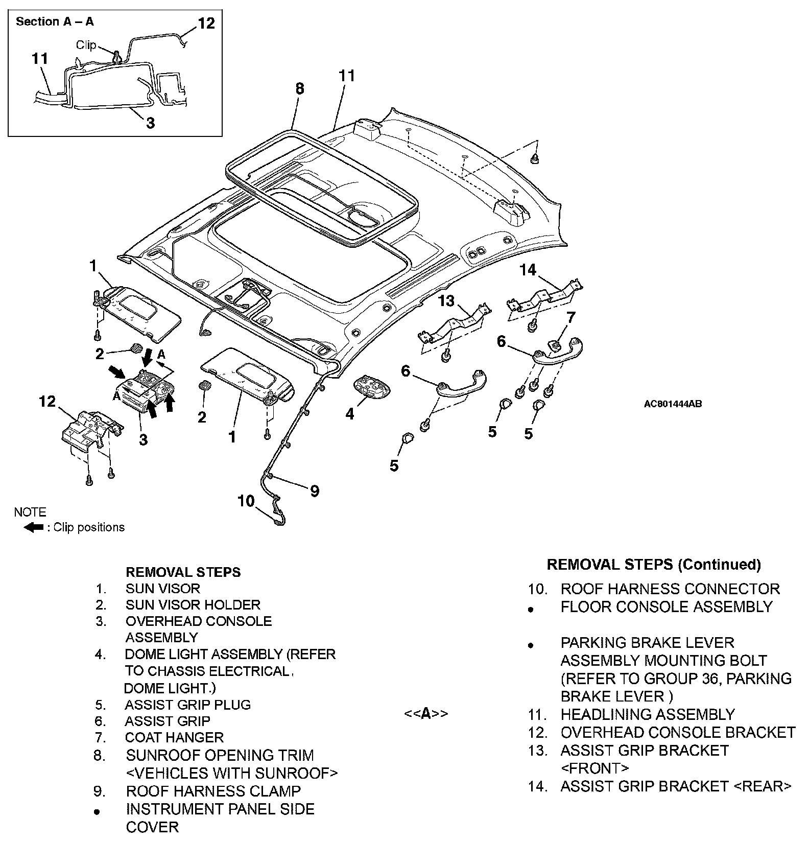 [[A]] HEADLINING ASSEMBLY REMOVAL