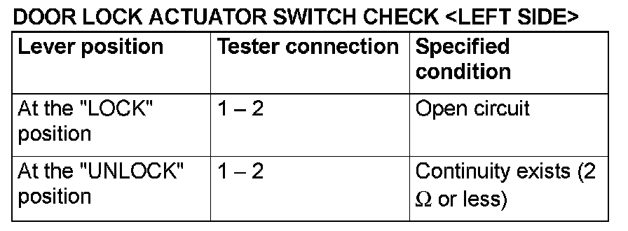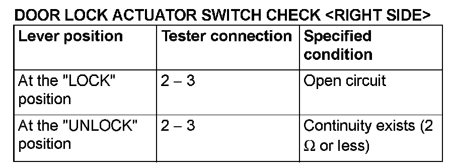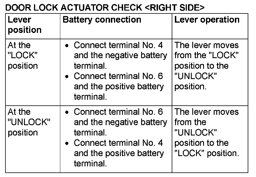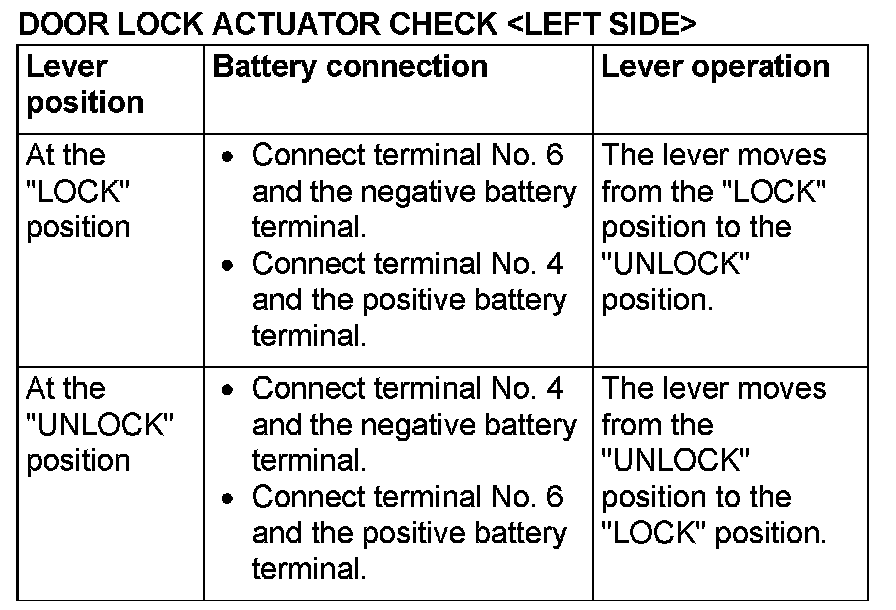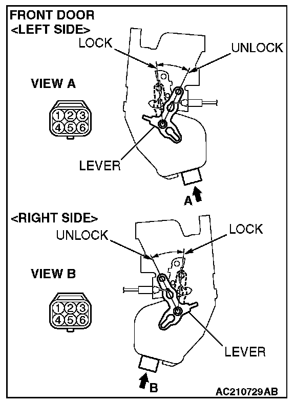 INSPECTIONFRONT DOOR LATCH CHECKThe illustration shows when the door lock actuator is viewed from inside the door.