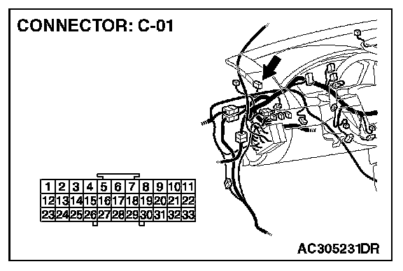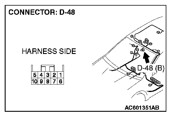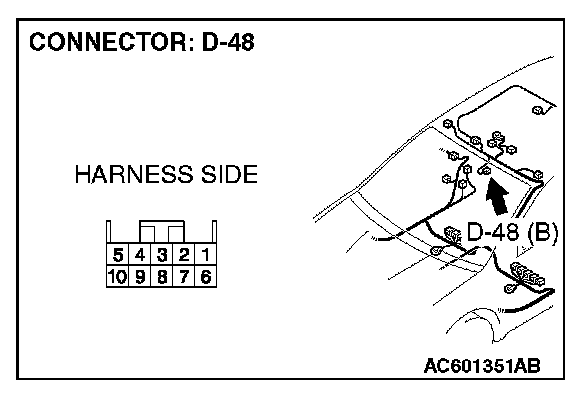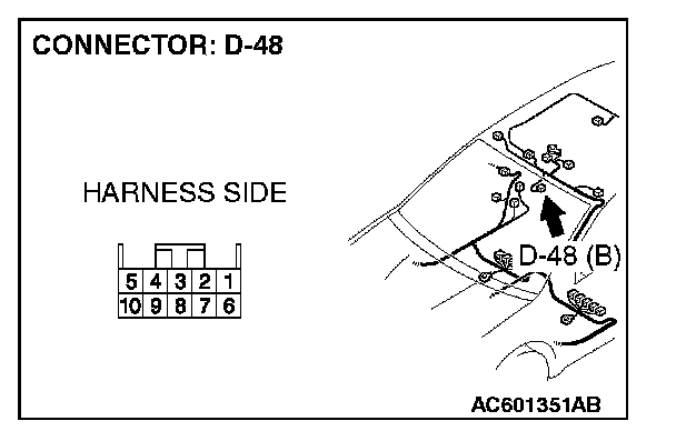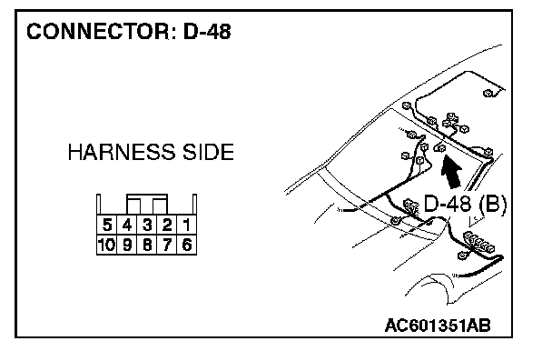 STEP 1. Check inside rear view mirror assembly connector D-48 for loose, corroded or damaged terminals, or terminals pushed back in the connector.