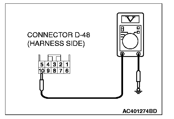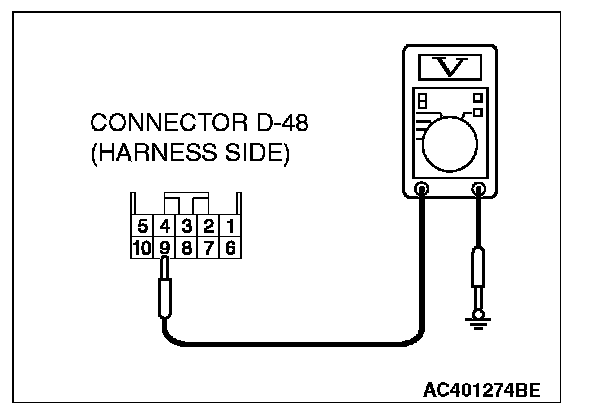 STEP 6. Measure the voltage at inside rear view mirror assembly connector D-48.