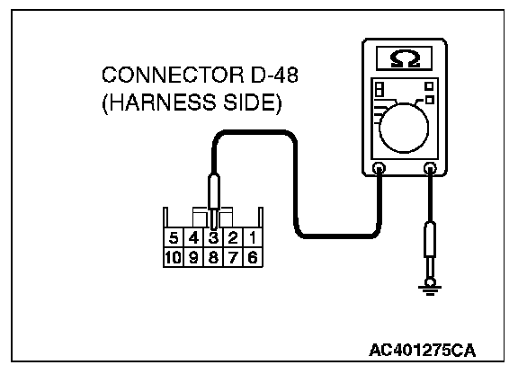 STEP 5. Check the wiring harness between inside rear view mirror assembly connector D-48 (terminal 3) and ground.