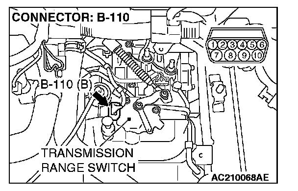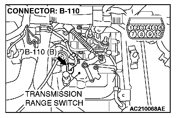 STEP 7. Check transmission range switch connector B-110 for loose, corroded or damaged terminals, or terminals pushed back in the connector.