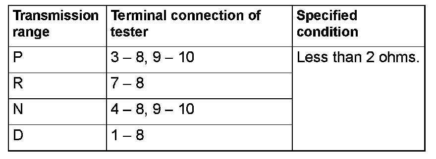STEP 8. Check the transmission range switch.