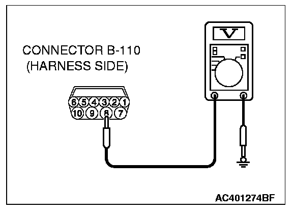 STEP 9. Check the ignition switch (IG1) circuit to the backup light switch. Measure the voltage at transmission range switch connector B-110.