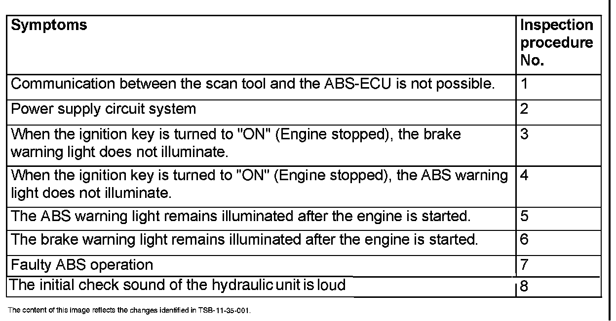 The contents of this article and images reflect the changes identified in TSB-11-35-001.SYMPTOM CHART