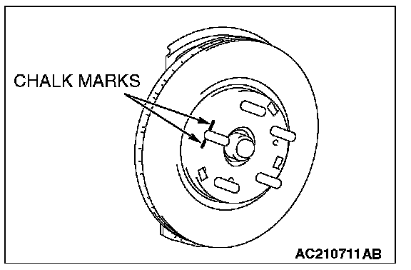1) Chalk phase marks on the wheel stud and the brake disc as shown.
