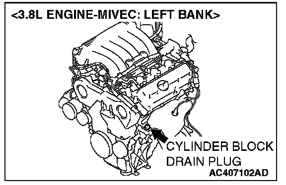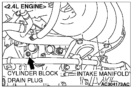 4. Drain the water in the water jacket by unplugging the drain plug of the cylinder block.