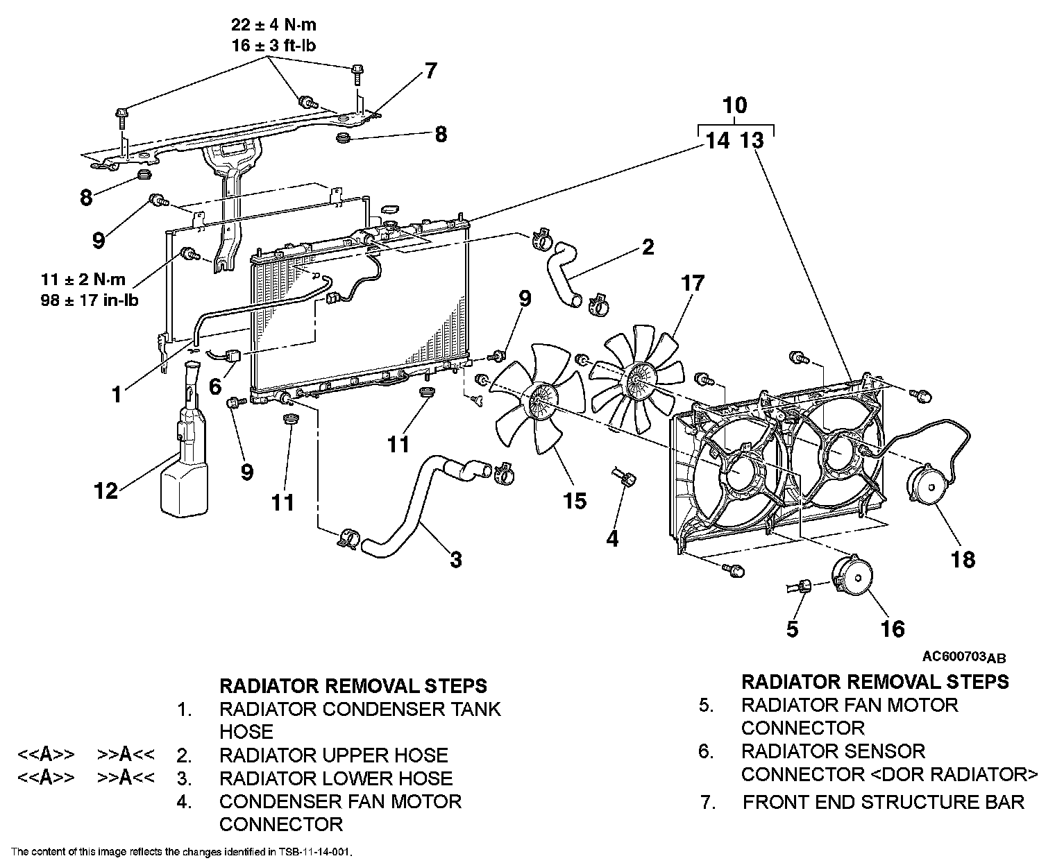 The contents of this article and images reflect the changes identified in TSB-11-14-001.RADIATOR