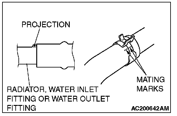1. Insert each hose as far as the projection of the radiator, water inlet fitting or water outlet fitting.