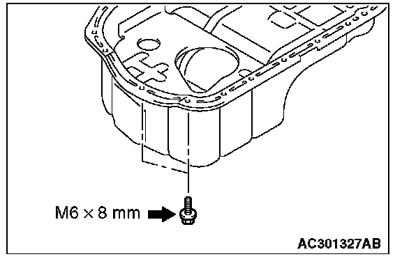 4. Tighten the engine oil pan mounting bolts to the specified torque. Be careful when installing, as the bolts indicated in the illustration have different lengths from the other bolts.