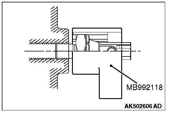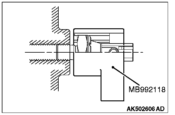 2. In the same manner as removal, use special tool MB992118 to tighten the engine oil pressure switch to the specified torque.