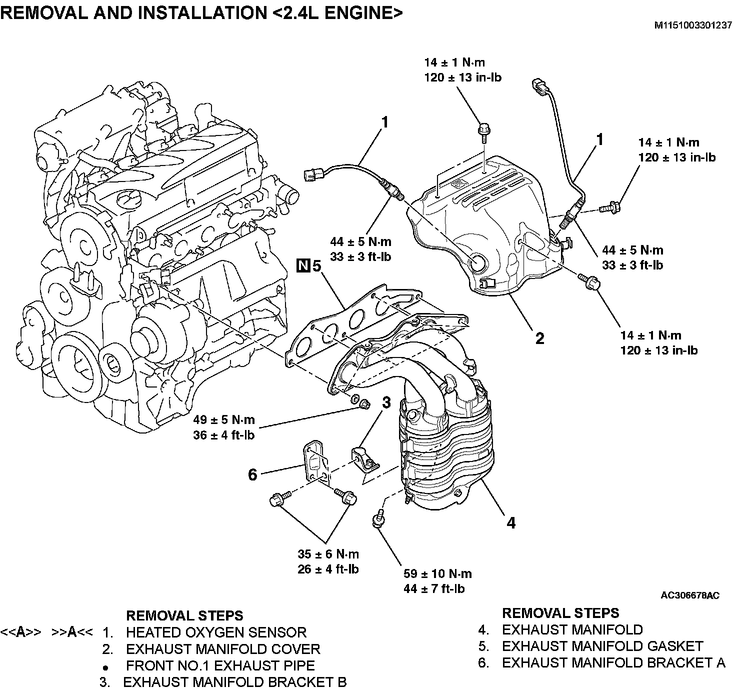 EXHAUST MANIFOLDREMOVAL AND INSTALLATION [2.4L ENGINE]