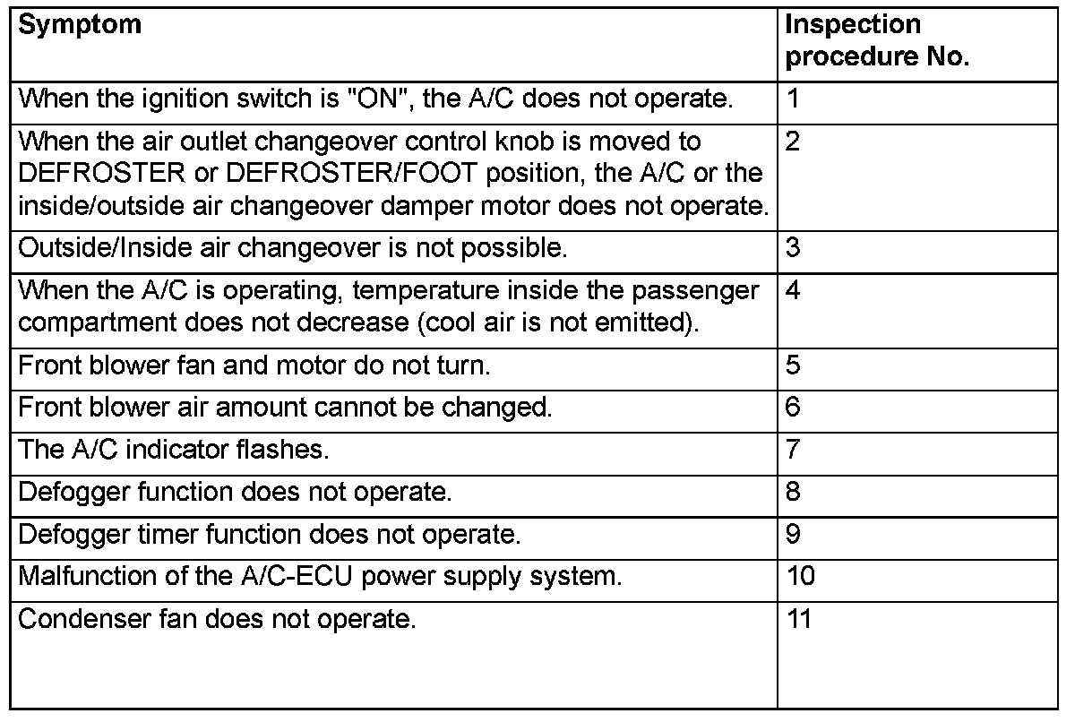 SYMPTOM CHARTCAUTION: During diagnosis, a DTC code associated with another system may be set when the ignition switch is turned on with connector(s) disconnected. On completion, confirm all systems for DTC code(s). If DTC code(s) are set, erase them all.
