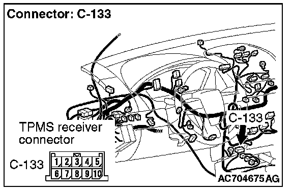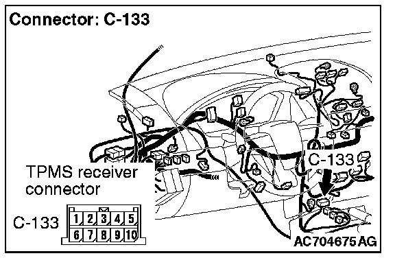STEP 6. Check TPMS receiver connector C-133 and combination meter connector C-101 for loose, corroded or damaged terminals, or terminals pushed back in the connector.