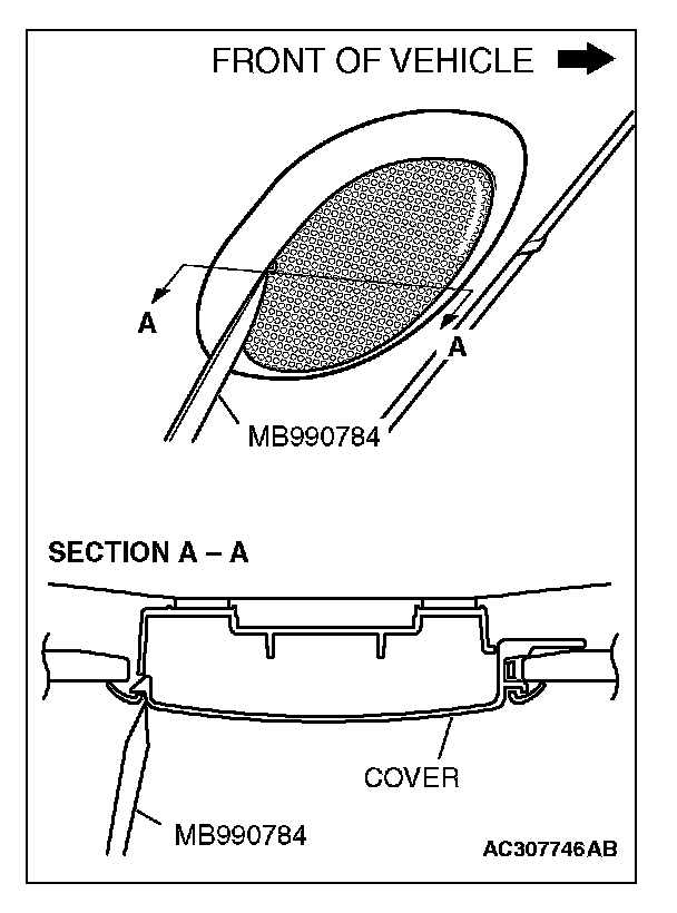 Use special tool MB990784 to remove the cover as shown in the illustration.