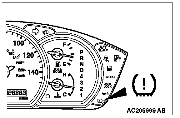TPMS WARNING LIGHT CHECK1. Check that the TPMS warning light illuminates for approximately three seconds when the ignition switch is turned to the "ON" position.