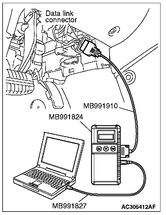 1) Connect scan tool MB991958 to the data link connector.
